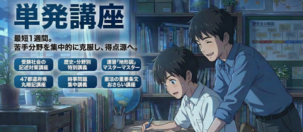 単発講座は、受験社会をピンポイントで対策する学習メニューです。